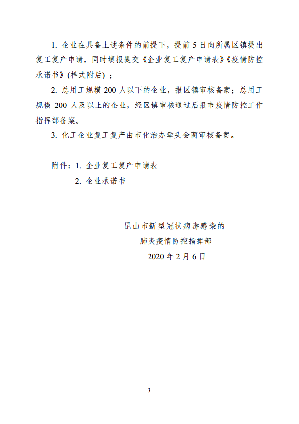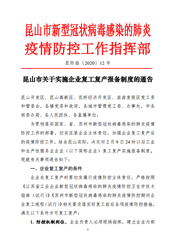 昆山市关于实施企业复工复产报备制度的通告